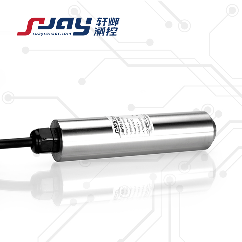 SUAY20通用液位变送器使用MEMS技术为核心的高灵敏度硅压阻感压芯片,是基于流体静力学原理,通过对液体压强的测量转换为液位高度。该产品结构可靠,带通气导管的液位测量专用电缆及专业的水密封技术,既保证了产品的密封性,又使得参考压力腔与大气相通,从而使该系列产品的使用不受不同地域环境的限制,既保证了产品的长期稳定性,又极大提高了该款液位变送器的综合使用精度。全密封潜入式测量,一体化结构和标准化的输出信号,为现场使用和自动化控制提供了方便。再通过合理的选择、设计接液材料、电缆、护管等,可对不同介质的液位进行投入式或插入式测量,适用于城市供排水、污水处理、水池、水文检测、水库、河道、海洋等水下长期测量。